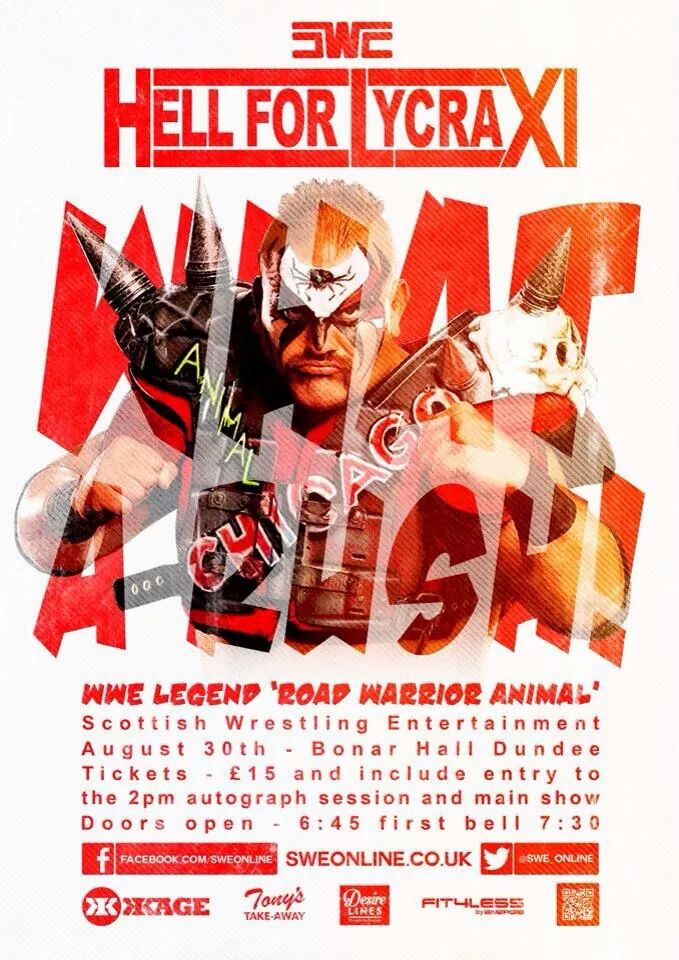 Overall the positives far outweighed the negatives. There were some issues I had with the cage match, Animal, Marty Jones disappearing during the Joe Hendry – Doug Williams match, the Yes flag, just little things. I enjoyed the event as always and with this being my third Hell for Lycra I can start comparing them a bit more. It was a good Hell for Lycra, not as good as last year and with them announcing Hell for Lycra XII to be at the Caird Hall in Dundee on August 29th 2015 they have a lot of work to do to sell out the venue. I did a quick approximate count and reckon that there were 320-350 people in the crowd. A good number but the Caird Hall will need to have more. Much more. I have faith that it will be possible and I look forward to seeing it happen.