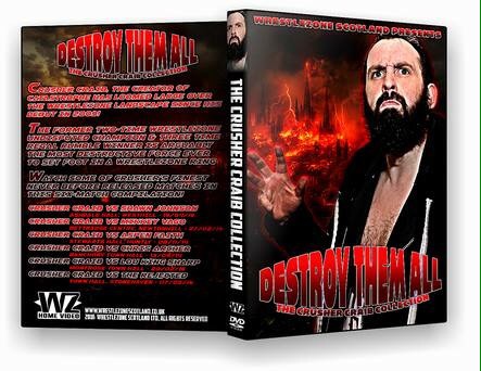 Crusher Craib. One of the most underrated talents in the UK today. The Creator of Carnage is currently on the sidelines with a broken hip socket suffered at Aberdeen Anarchy on June 4th. WrestleZone management then made the announcement last month that they would be releasing a DVD for the big man featuring 6 matches. The DVD was aptly titled ‘Destroy Them All: The Crusher Craib Collection’. That’s what brought me here with this review.