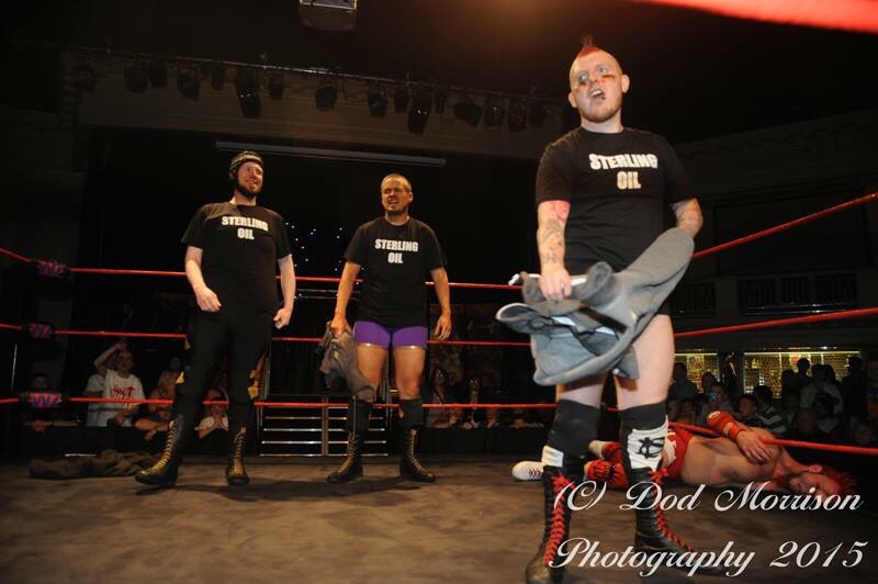 Aberdeen Anarchy 2015 wasn’t the best of nights for the former members of Sterling Oil, William Sterling, teaming with Blue Thunder and D-Von Dudley, lost to The Dogs of War and Lou King Sharp. Lord Alan Sterling was tapping out, again, to Chris Masters and Damien was defeated by Crusher Craib in a Revolution Rules match. The team had split in 2013 with each going on individual paths. William enjoyed success as a Tag Team Champion with Blue Thunder, Damien had the same success with Revolution while Alan had banged his head and became Lord Alan Sterling.