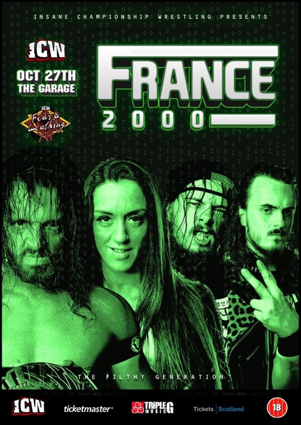 Before I go on, the name of the event, France 2000… why? I know why two years ago, it was a homage to the World Cup in 1998 or was that the Playstation game of the same name… anyway, the next year they went for France 99, didn’t work as well and doesn’t really again. If I was to explain it to someone just coming into ICW they’d be baffled, and if they were going with the retro game theme for pre-Fear & Loathing Fight Clubs, why not mix it up like ICW: Bubble Bobble, ICW: Goldeneye, ICW: Doom or even ICW: Jimmy White’s Whirlwind Snooker (or how about ICW: ICW The Game? Remember that? Oh wait you won’t because it was never released despite heavy advertising), these are some suggestions but I