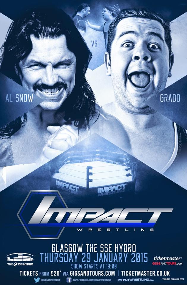 At the time IMPACT were concluding their second season of British Bootcamp which returned October 2014, and heavily featured Scottish talent including Noam Dar, the future Nikki Cross, Piper Niven, and Alba Fyre along with familiar faces like The Owens Twins, Dave Mastiff, Rampage Brown, Sha Samuels, and eventual winner Mark Andrews. It also had a through line story of Grado ticking off British Bootcamp judge Al Snow by being late, unprepared, and a general nuisance which led to them facing off at The SSE Hydro in Glasgow.